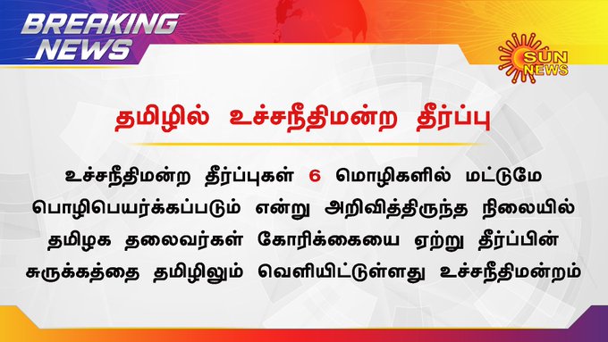 முதல் முறையாக உச்ச நீதிமன்றத்தின் தீர்ப்பு சுருக்கமாக தமிழிலும் வெளியீடு... ஆர்வலர்கள் மகிழ்ச்சி