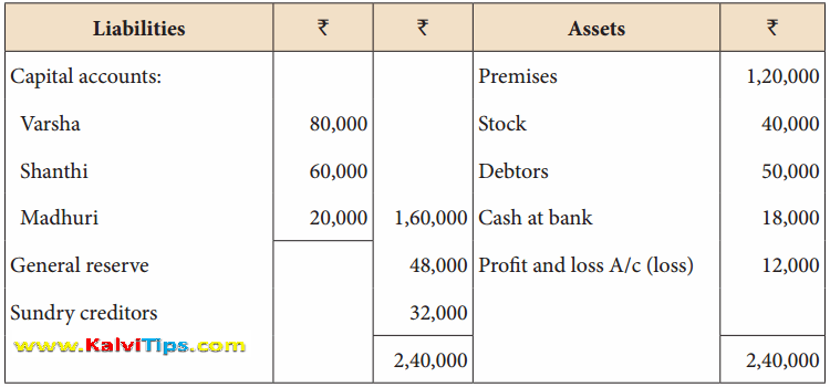 Vijayan, Sudhan and Suman are partners who share profits and losses in their capital ratio. Their balance sheet as on 31.12.2018 is as follows: